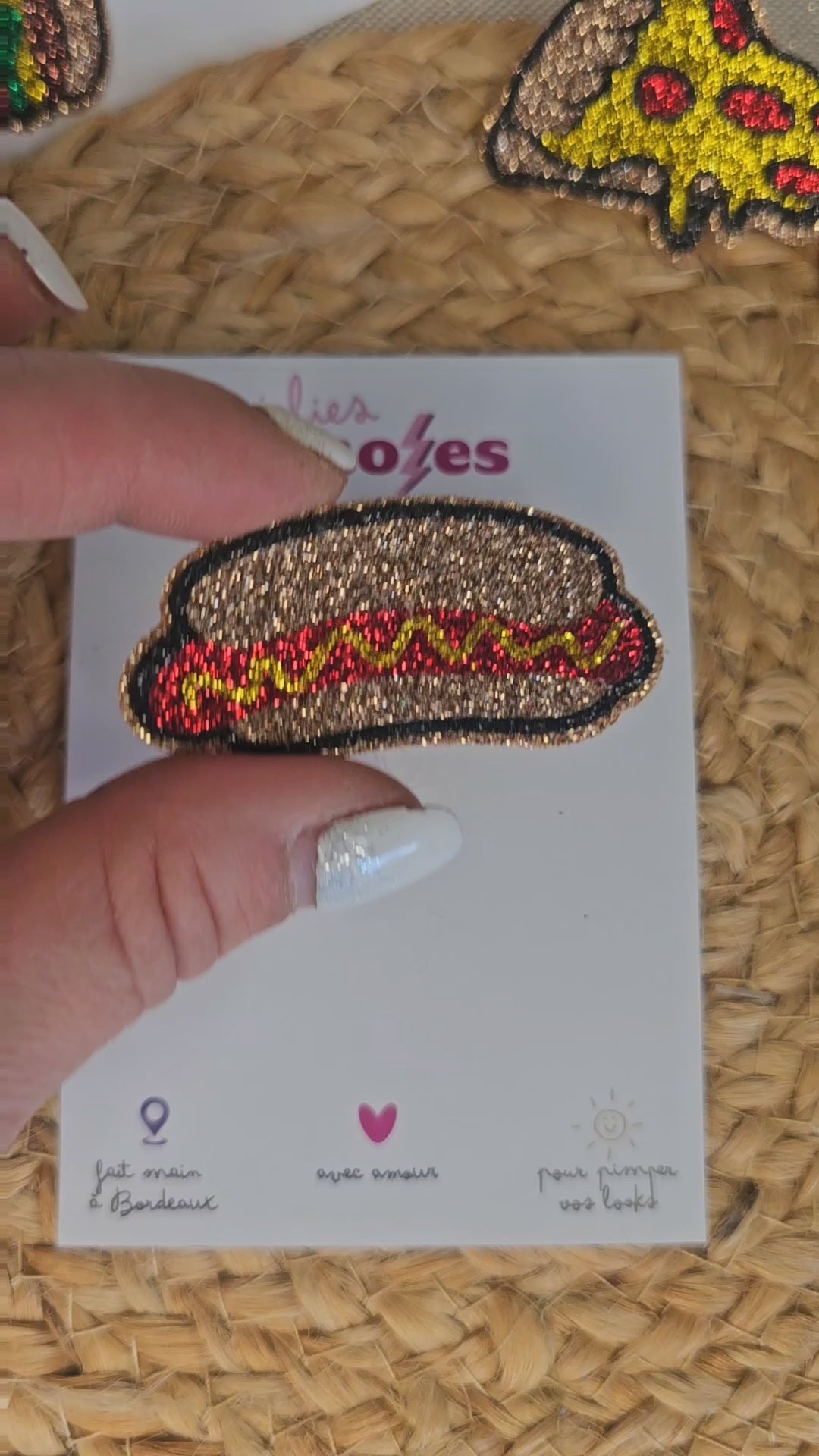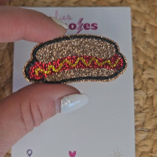 Le pinâs « Hot Dog » est un accessoire pailletĂ© qui apporte une touche de gourmandise et de bonne humeur Ă ton look. IdĂ©al pour les fans de street food ou pour ajouter un petit clin dâĆil rigolo Ă tes tenues !